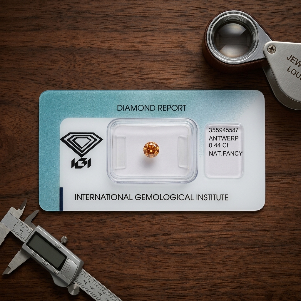 This 0.44 ct natural diamond has been graded by IGI as FANCY color and clarity.