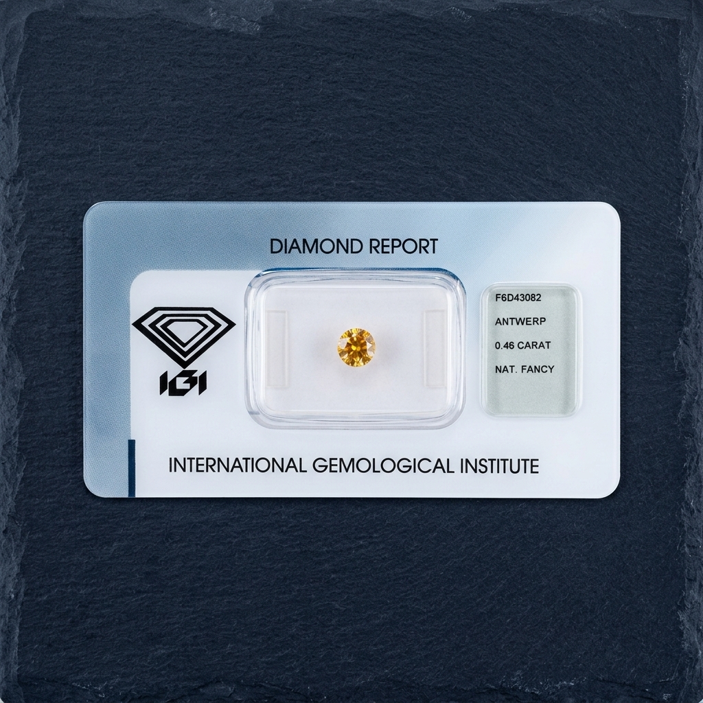 This 0.46 ct natural diamond has been graded by IGI as FANCY color and clarity.