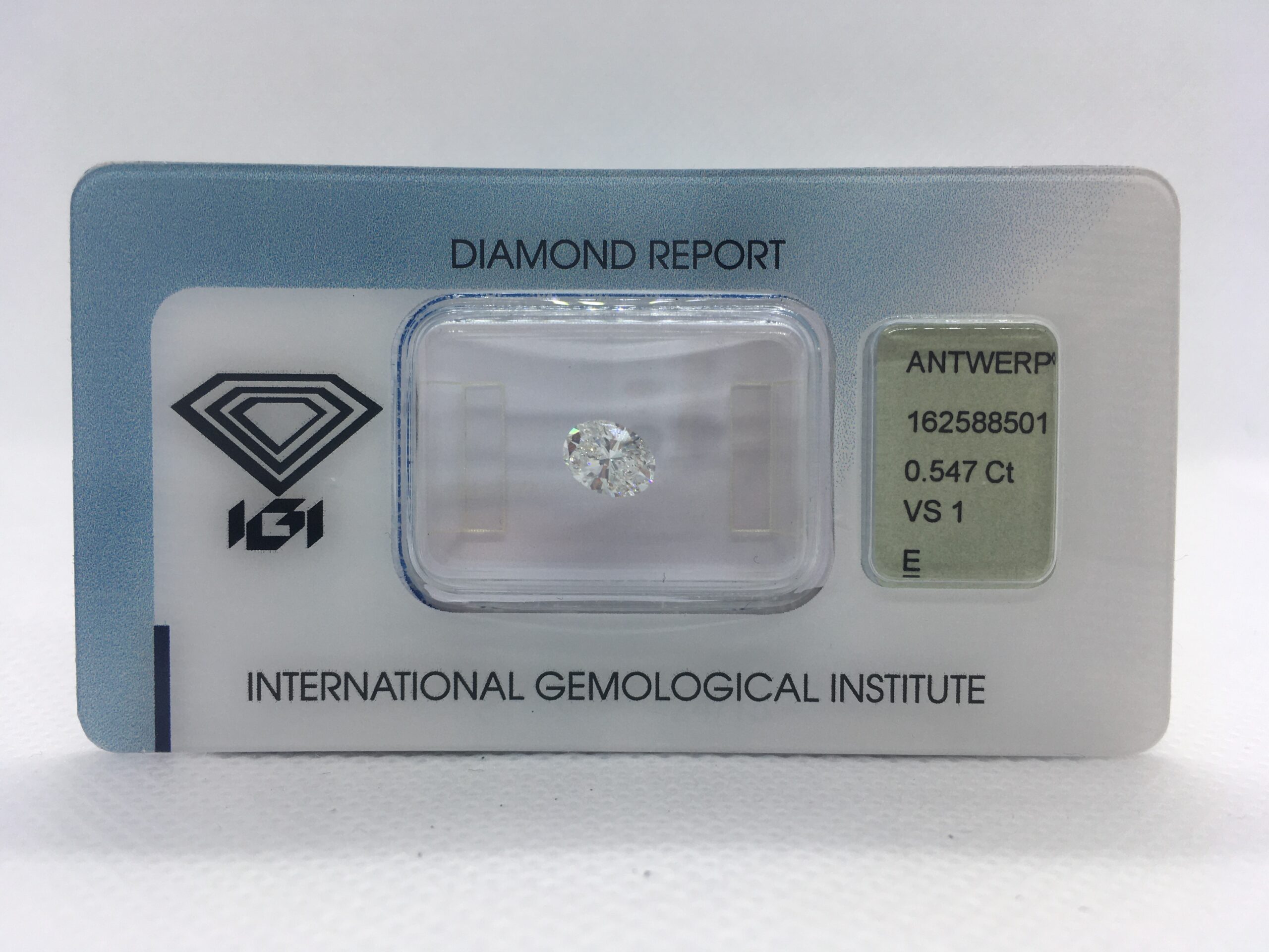 This 0.547 ct natural diamond has been graded by IGI as E color and VS1 clarity.