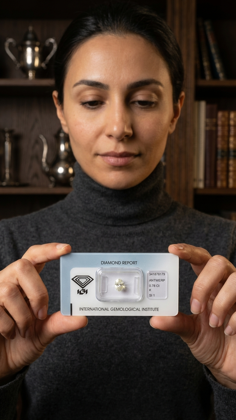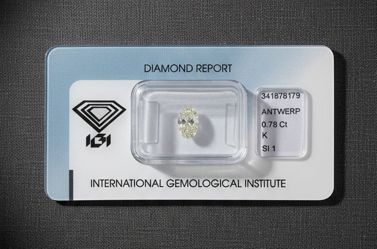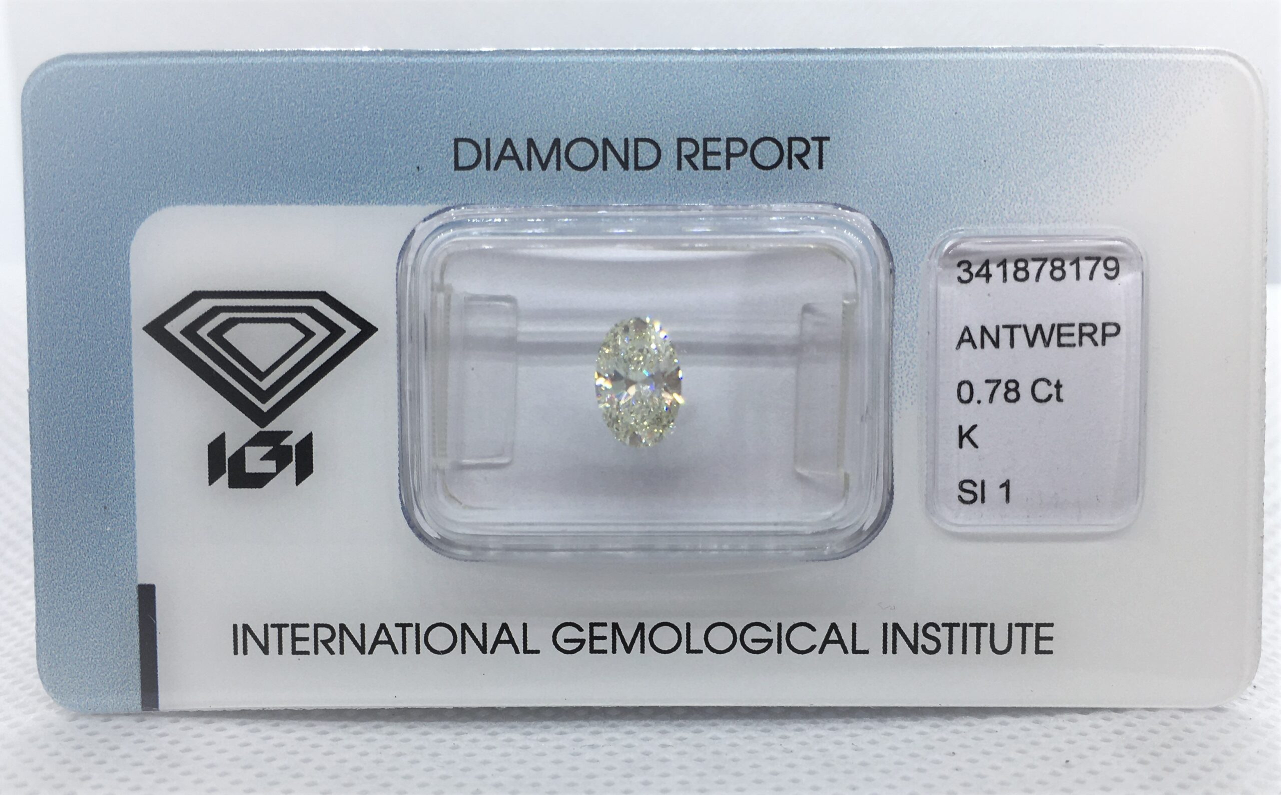 This 0.78 ct natural diamond has been graded by IGI as K color and SI1 clarity.