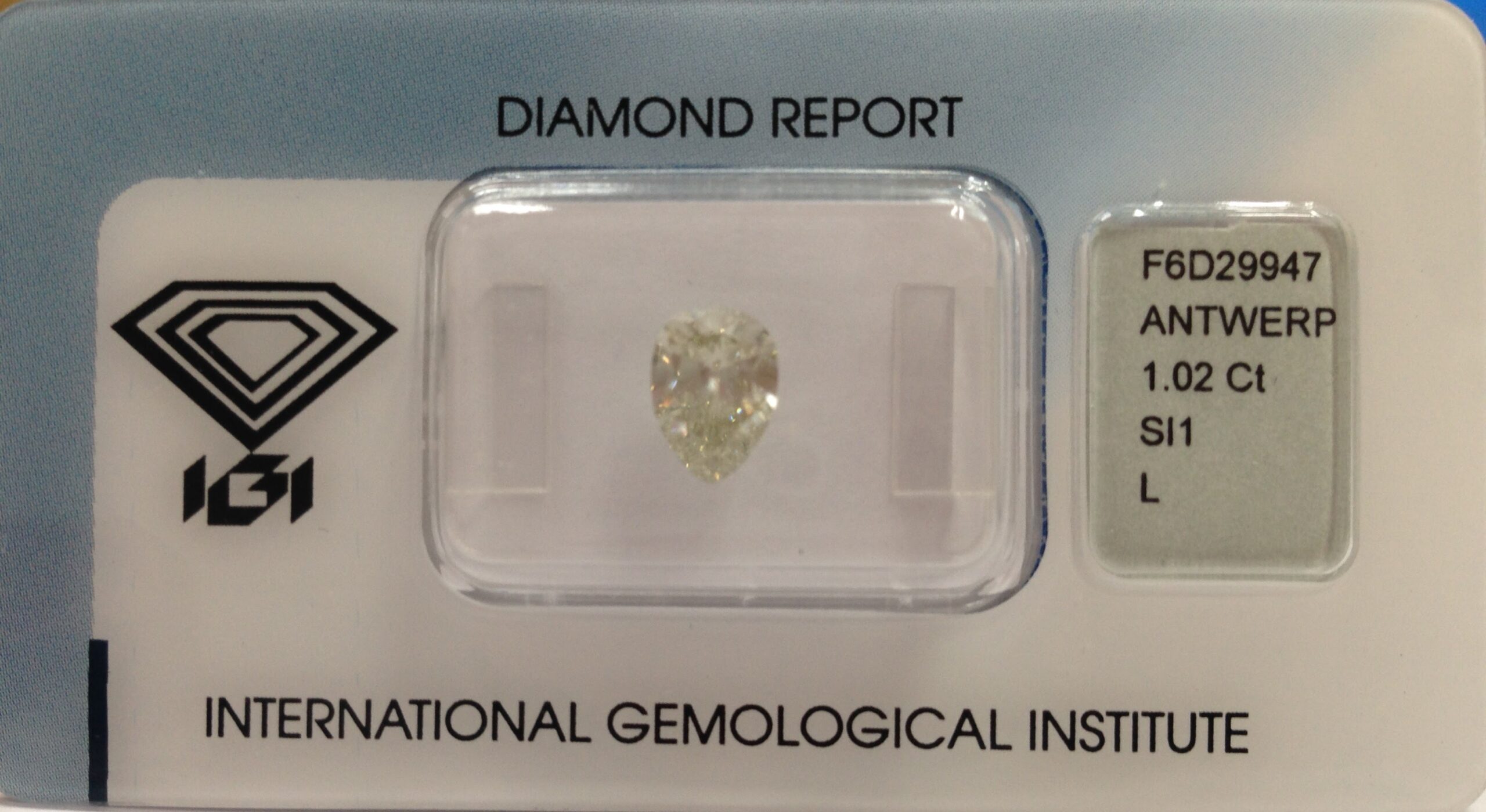 This 1.02 ct natural diamond has been graded by IGI as L color and SI1 clarity.