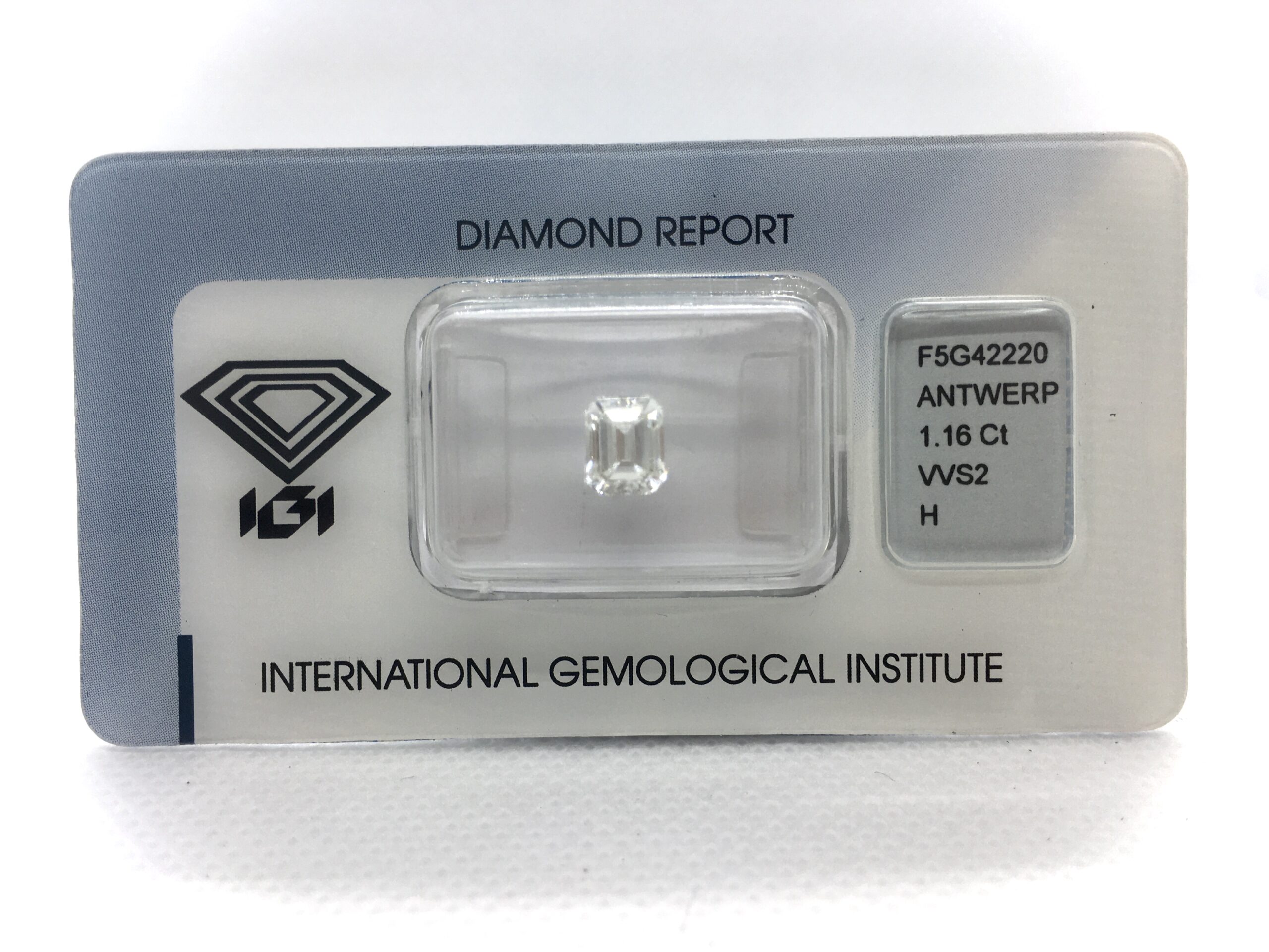 This 1.16 ct natural diamond has been graded by IGI as H color and VVS2 clarity.