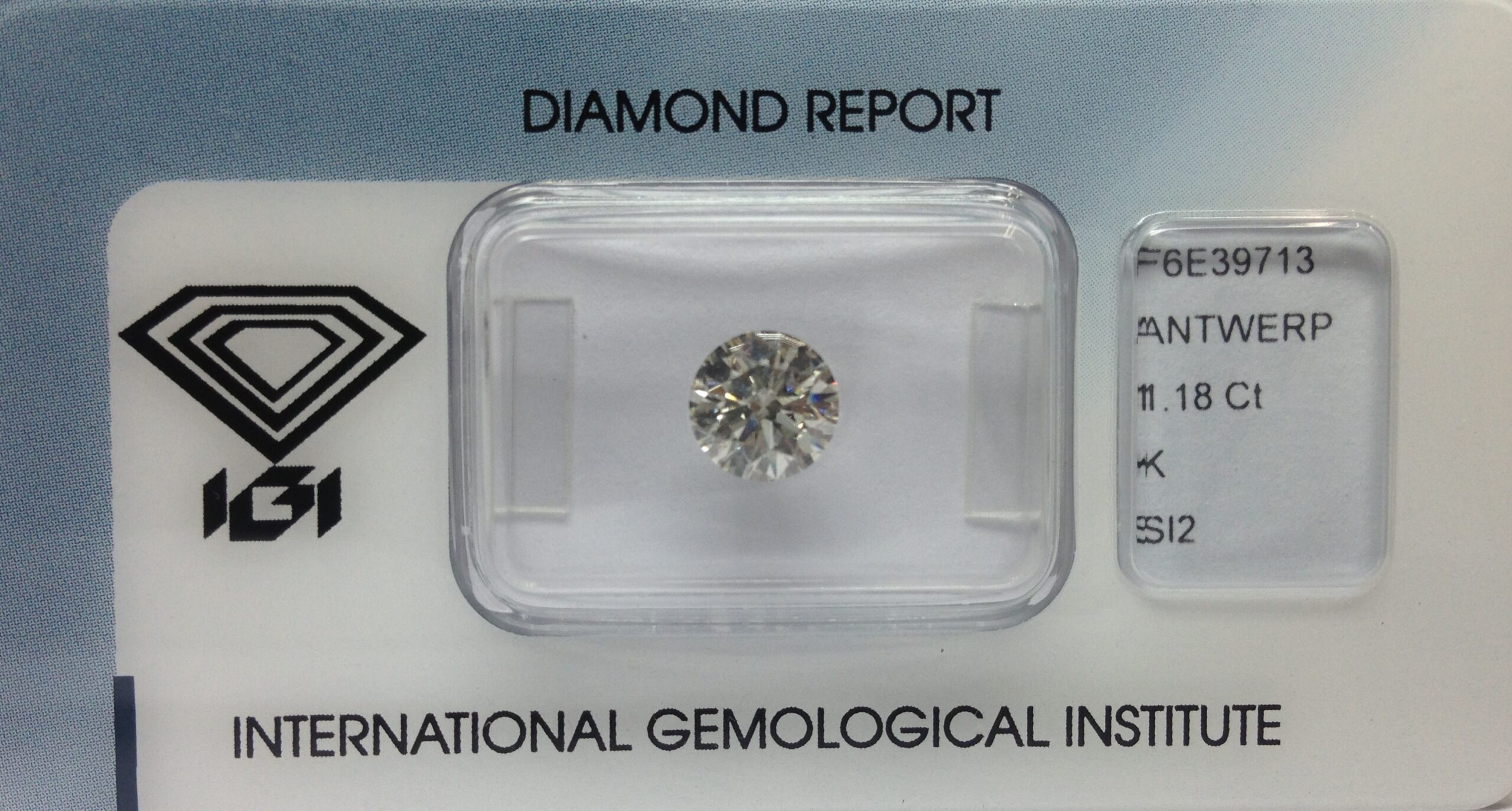 This 1.18 ct natural diamond has been graded by IGI as K color and SI2 clarity, with an Excellent cut.