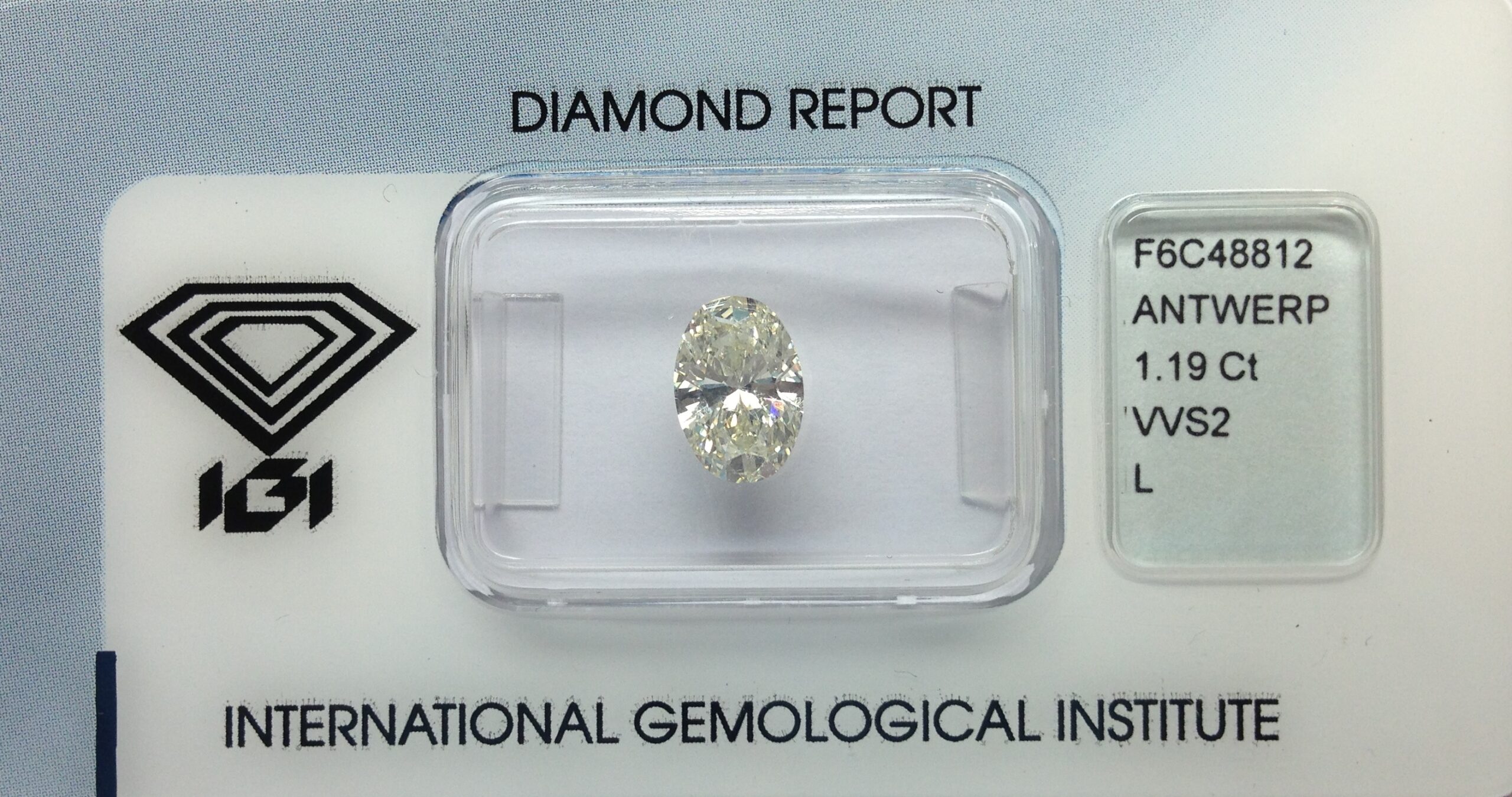 This 1.19 ct natural diamond has been graded by IGI as L color and VVS2 clarity.