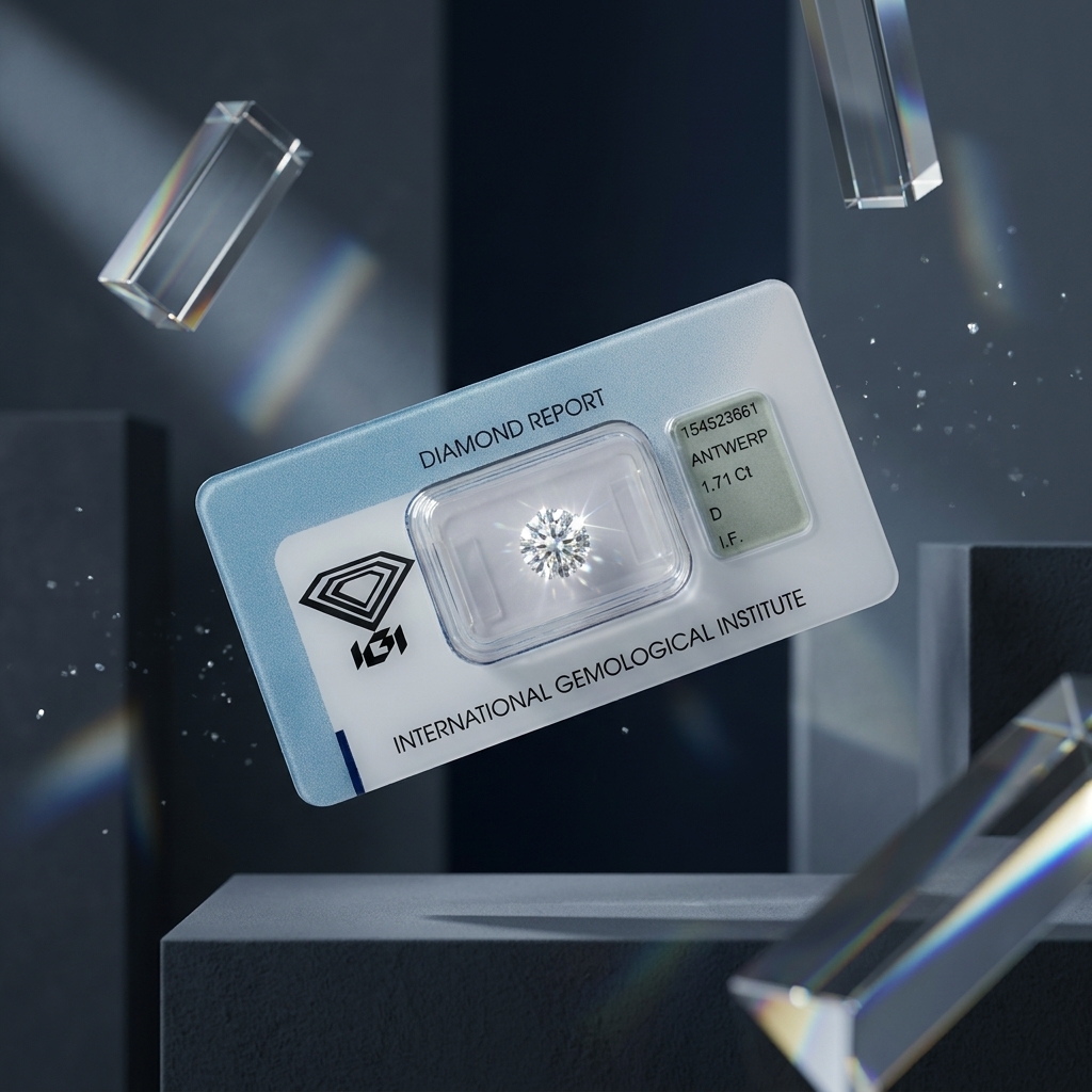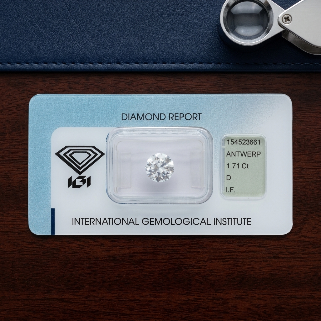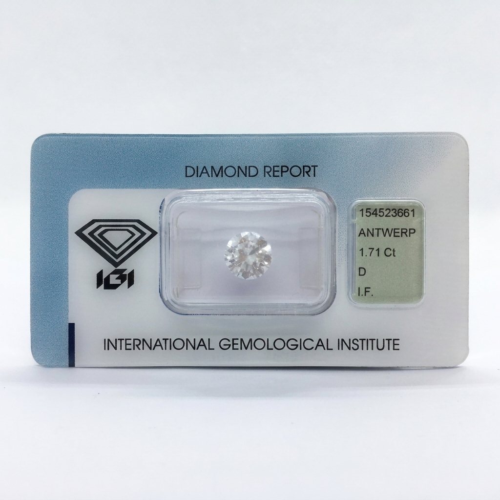 This 1.71 ct natural diamond has been graded by IGI as D color and IF clarity, with a Very Good cut.